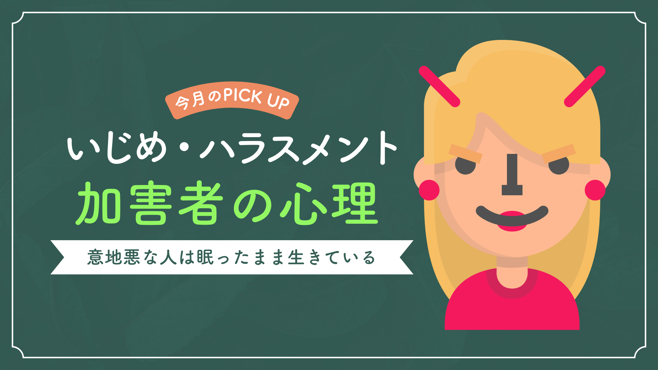 というわけで今回は、被害者への対処法ではなく、今回は加害者側の心理をひも解く記事を書こうと思います。知ることで心が軽くなる部分もあると思います。